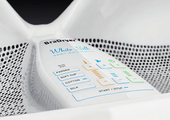 A very gentle infrared (IR) heat source helps evaporate moisture from the bra fabric while silent fans inside the appliance help remove this moisture.